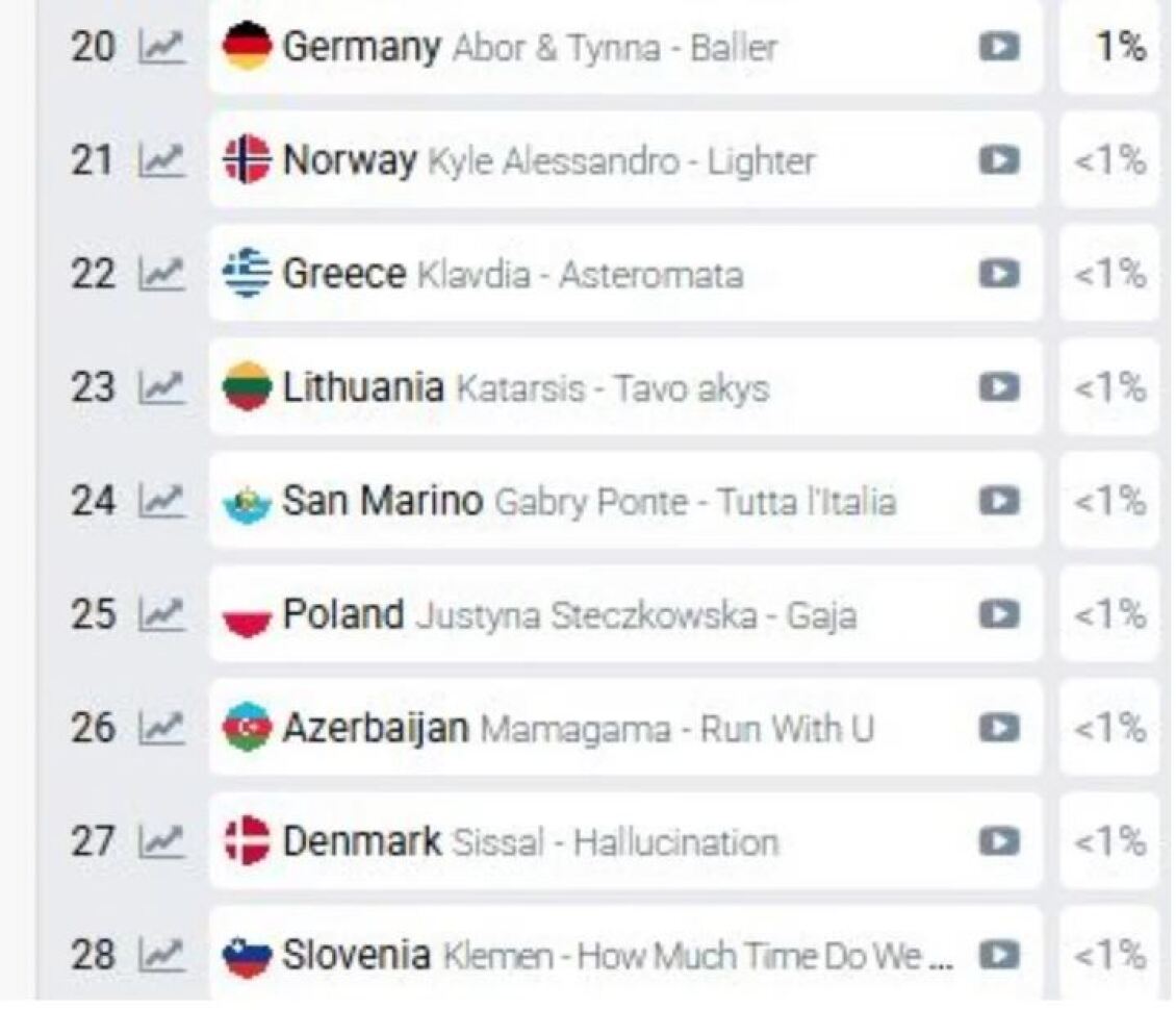 Ειδικότερα τόσο η Αυστρία όσο και η Γαλλία βρίσκονται σε ανοδική πορεία στις προβλέψεις των στοιχημάτων δείχνοντας ότι μπορούν να προκαλέσουν σοβαρές εκπλήξεις στη Σουηδία που είναι εδώ και μήνες θεωρείται ως το απόλυτο φαβορί πριν καν επιλεγεί τραγούδι.